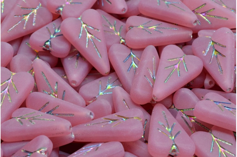 ハートリーフビーズ、オパールピンク 28103 マット (71010-28103-84100)、ガラス、チェコ共和国