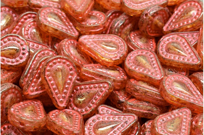 フィリグリーティアドロップビーズ、クリスタルトラバーチンピンクライン(00030-86800-43807)、ガラス、チェコ共和国