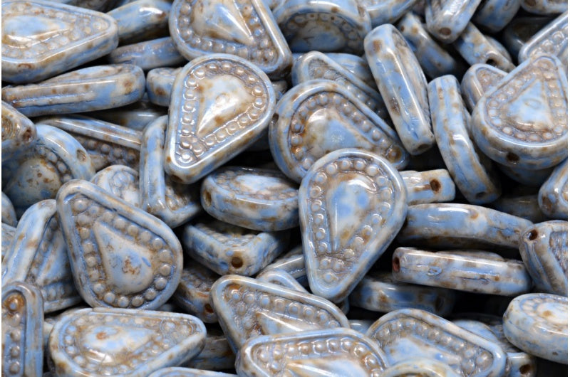 フィリグリーティアドロップビーズ、ホワイトトラバーチンブルースポット(02010-86800-33308)、ガラス、チェコ共和国