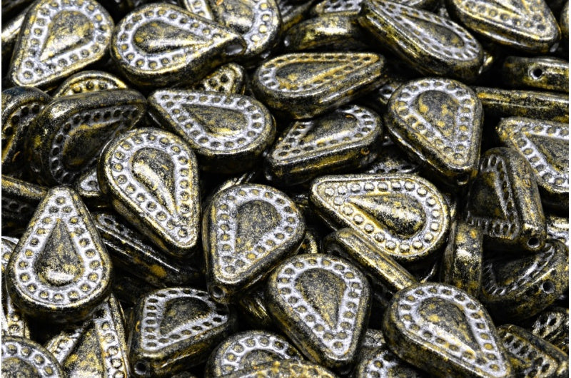 フィリグリーティアドロップビーズ、ブラックシルバーライン 34302 (23980-54301-34302)、ガラス、チェコ共和国
