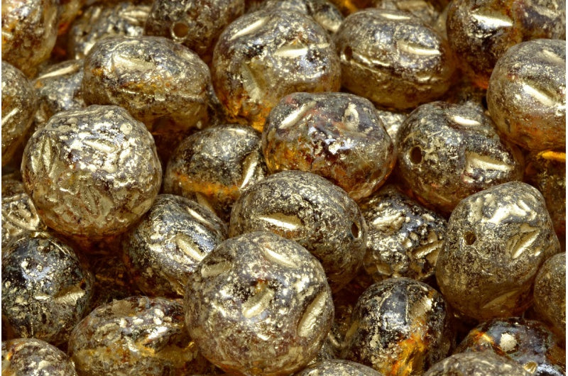 モノンストーンビーズ、クリスタルエッチングトラバーチンゴールドライニング(00030-etch-86800-54302)、ガラス、チェコ共和国