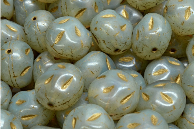 モノンストーンビーズ、オパールホワイトゴールドライン、ラスターグリーンフルコーティング(01000-54302-14457)、ガラス、チェコ共和国