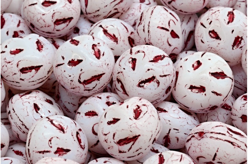 モノンストーンビーズ、白赤ライン入り(02010-54314)、ガラス、チェコ共和国