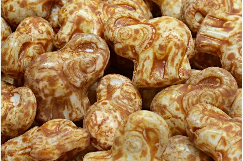Large Elephant Beads, White Travertin (02010-86800), Glass, Czech Republic