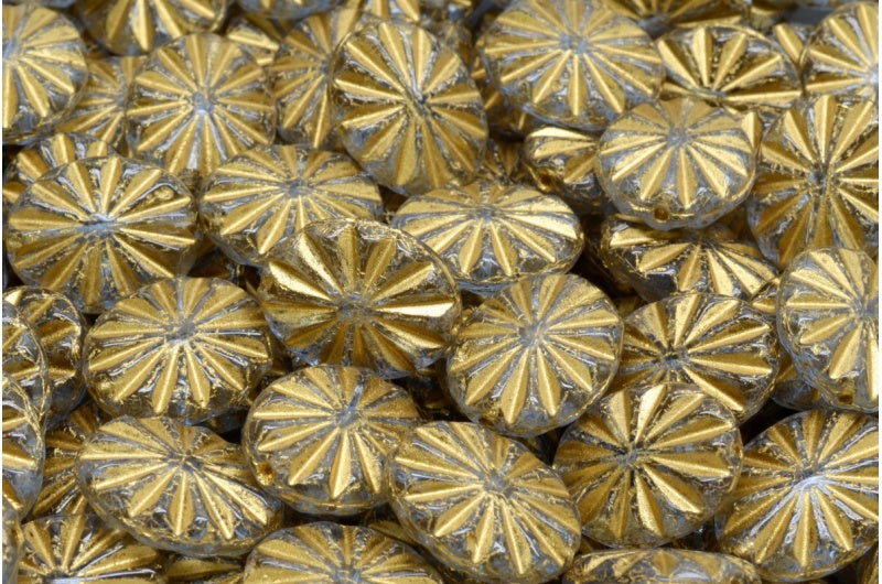 フラットオーバルビーズ、透明ライトアメジスト、ゴールドライン(20210-54202)、ガラス、チェコ共和国