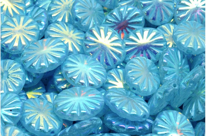フラットオーバルビーズ、クリスタルアブフル(2Xサイド)ライトブルーライン(00030-28703-54308)、ガラス、チェコ共和国