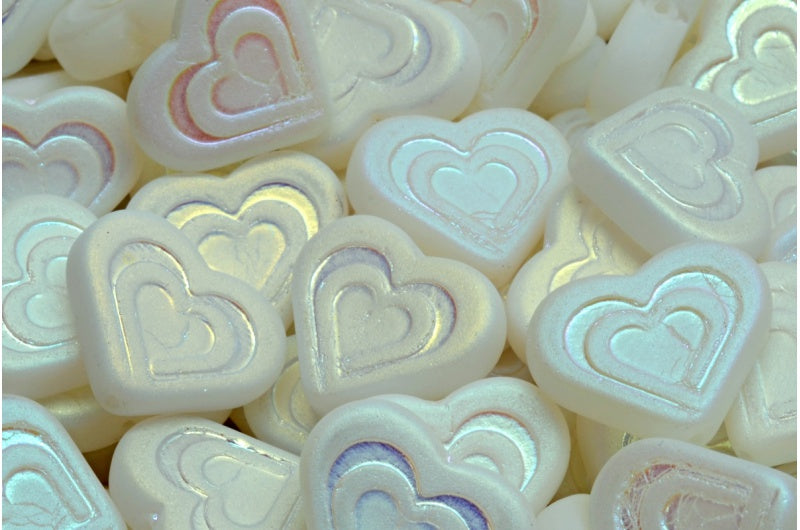 ハートインハートビーズ、ホワイトマットABフル(2Xサイド)(02010-84100-28703)、ガラス、チェコ共和国
