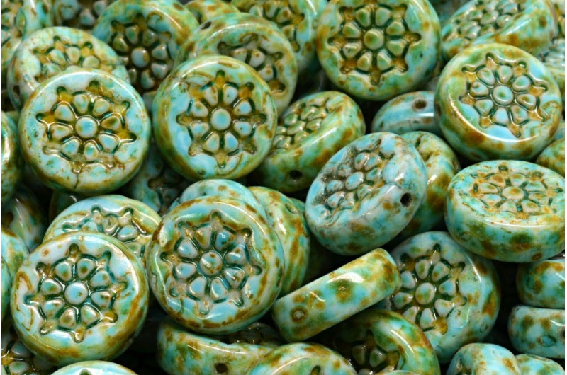 フラットラウンド、船の舵付き、ホワイトトラバーチンライトアクアブルー(02010-86800-34308)、ガラス、チェコ共和国