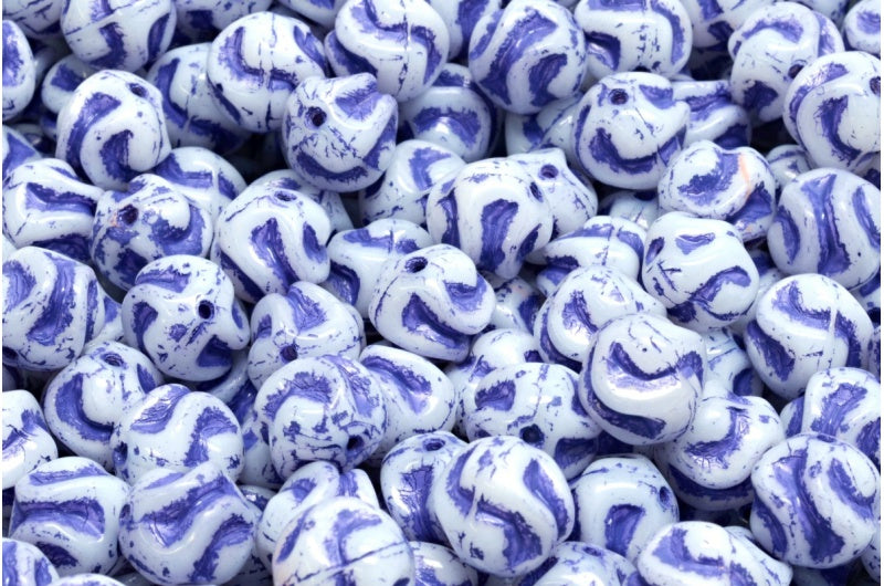 毛糸玉、白青線入り(02010-54325)、ガラス製、チェコ共和国