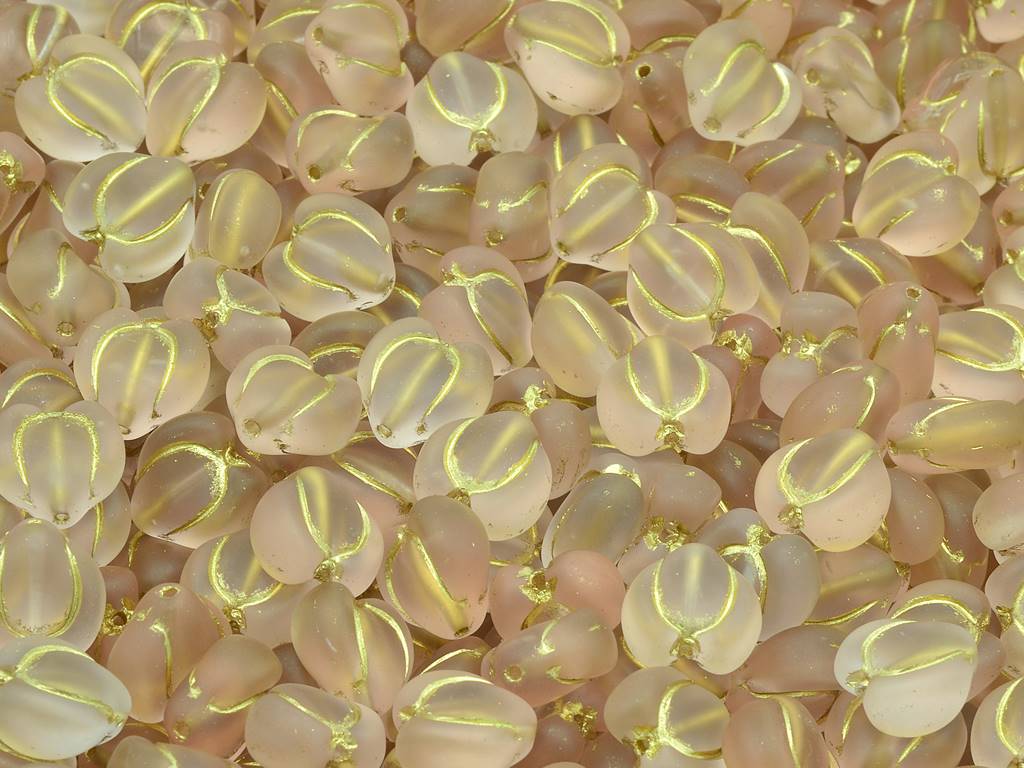 Heart Bud Beads, Transparent Pink Matte Gold Lined (70120-84110-54202), Glass, Czech Republic