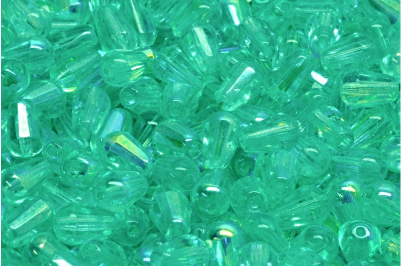 ファセット加工のファイアポリッシュ仕上げのティアドロップビーズ、クリスタルAb 34309(00030-28701-34309)、ガラス、チェコ共和国