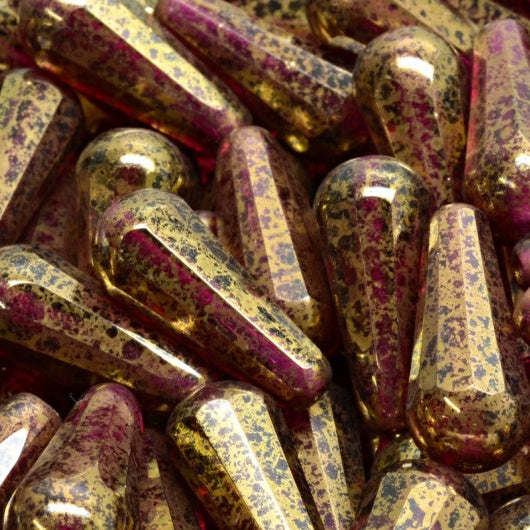Faceted Fire Polished Teardrop Beads, Transparent Red Terracotta Violet (70350-15496), Glass, Czech Republic