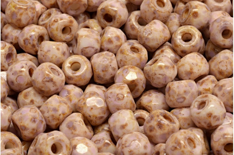 ファセット加工のポニーベーグルビーズ、チョークホワイトトラバーチン、コールドパープルスポット(03000-86800-33305)、ガラス、チェコ共和国