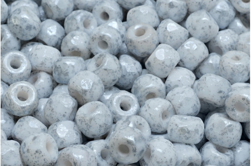 ファセットポニーベーグルビーズ、チョークホワイトシルバースプラッシュ(03000-94400)、ガラス、チェコ共和国