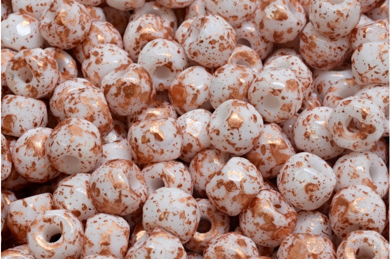 ファセットポニーベーグルビーズ、チョークホワイトコッパースプラッシュ(03000-94402)、ガラス、チェコ共和国