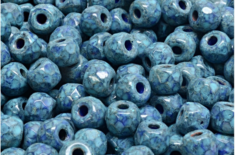 ファセット加工のポニーベーグルビーズ、不透明ブルートラバーチンターコイズスポット(33050-86800-33309)、ガラス、チェコ共和国