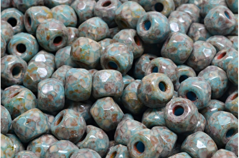 ファセット加工のポニーベーグルビーズ、不透明ブルートラバーチン、ベージュトラバーチンスポット(33100-86800-33301)、ガラス、チェコ共和国
