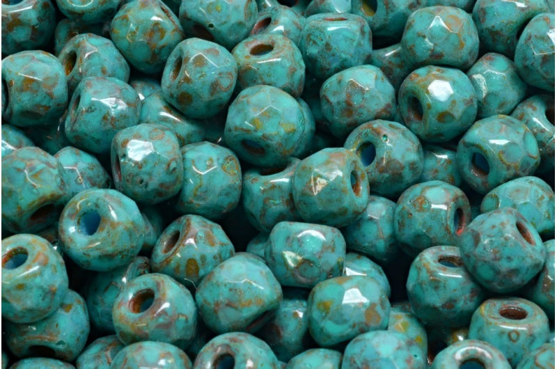 ファセット加工のポニーベーグルビーズ、ブルートラバーチンターコイズスポット(63050-86800-33310)、ガラス、チェコ共和国