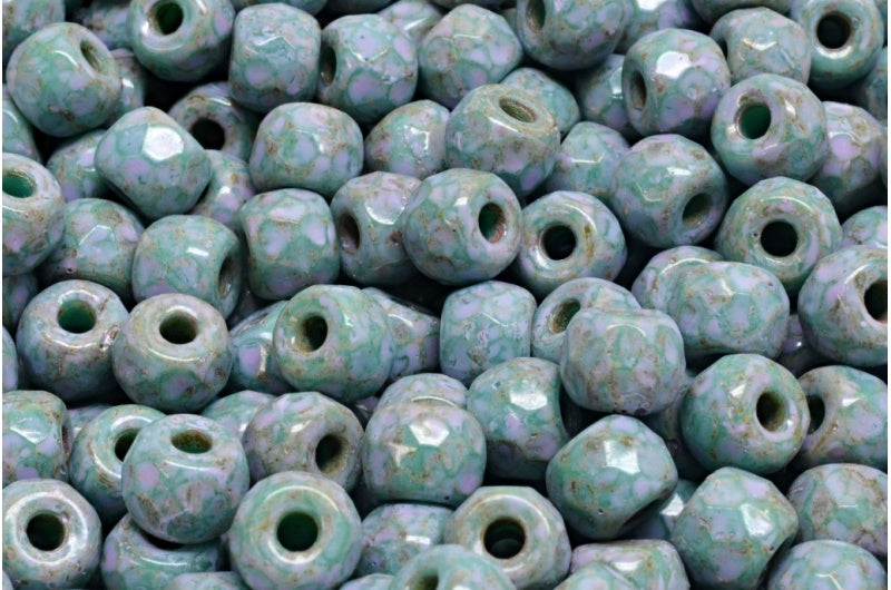 ファセット加工のポニーベーグルビーズ、ターコイズトラバーチンコールドパープルスポット(63130-86800-33305)、ガラス、チェコ共和国