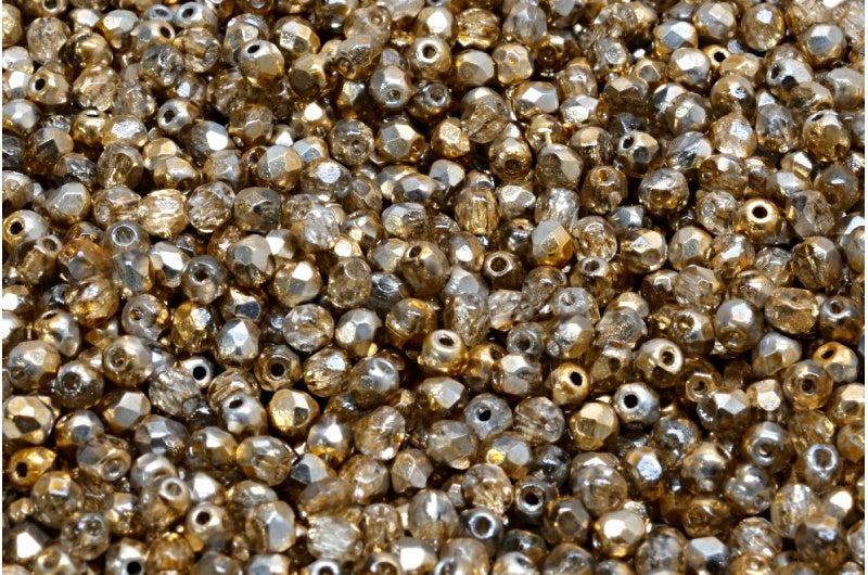 ファセットラウンドファイアポリッシュビーズ、クリスタルクリスタルシルバーハーフコーティング97387(00030-27001-97387)、ガラス、チェコ共和国