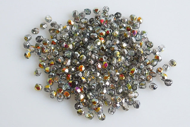 ファセット加工ラウンドファイアポリッシュビーズ、クリスタルボルケーノ(00030-28001)、ガラス、チェコ共和国
