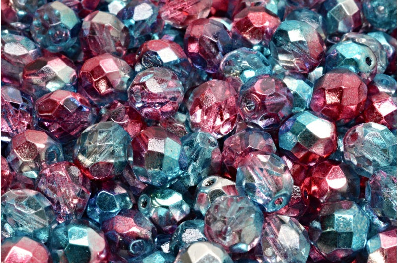 ファセット加工ラウンドファイアポリッシュビーズ、クリスタルグロッシーブルーレッド(00030-48213)、ガラス、チェコ共和国