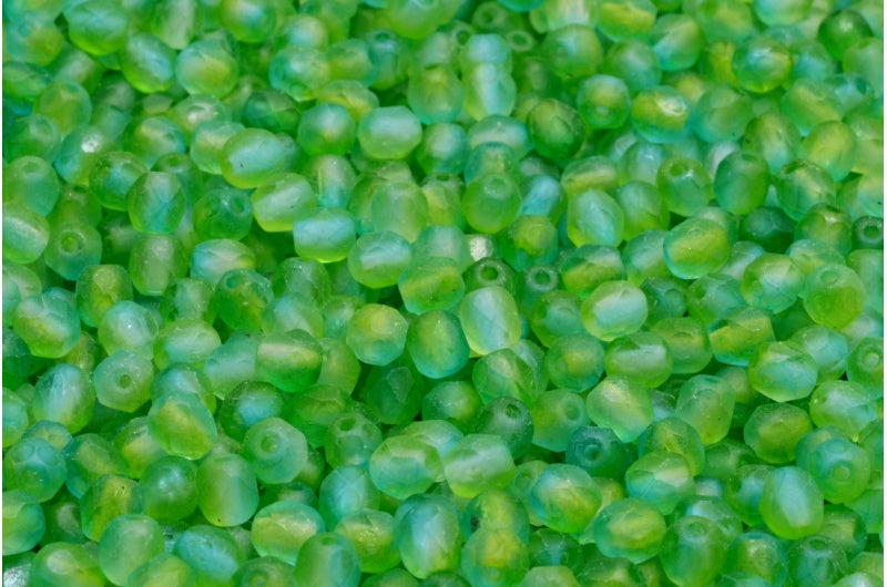ファセット加工ビーズ ラウンド、マットイエローグリーン透明染色クリスタル(00030-84100-48010)、ボヘミアクリスタルガラス、チェコ共和国