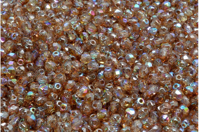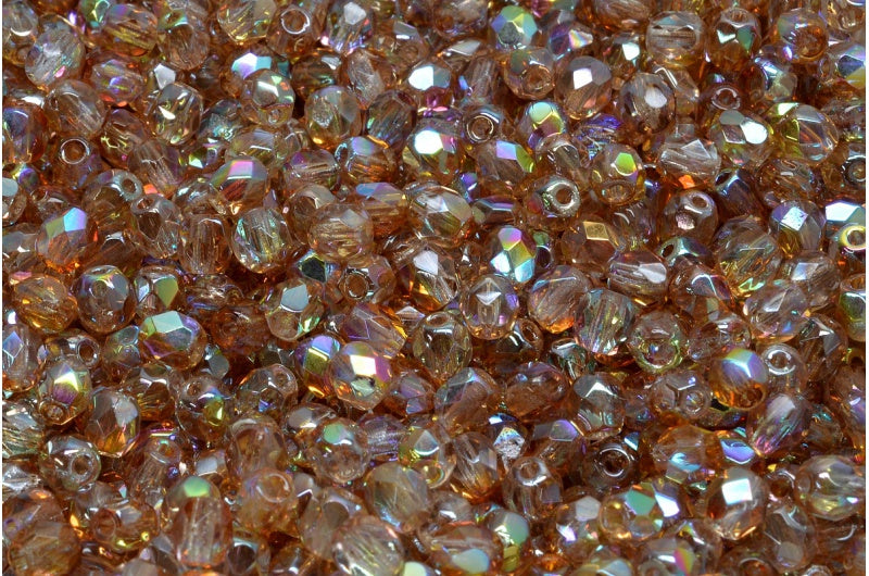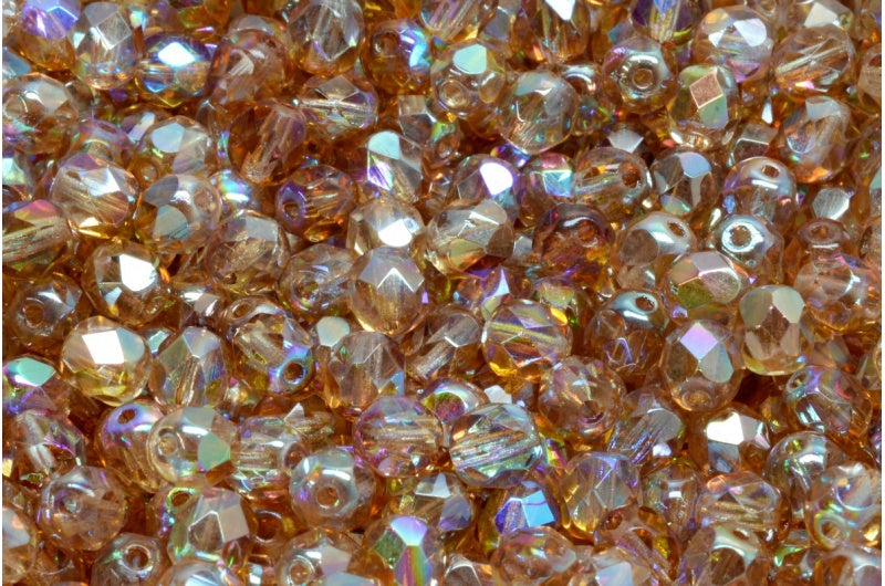 ファセット加工ラウンドビーズ、クリスタルトパーズコーティング(00030-98532)、ボヘミアクリスタルガラス、チェコ共和国