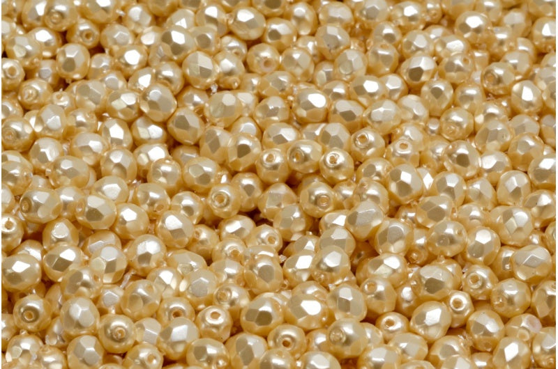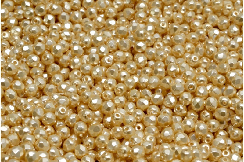 ファイアポリッシュファセットビーズラウンド、ホワイト 11411 (02010-11411)、ボヘミアクリスタルガラス、チェコ共和国