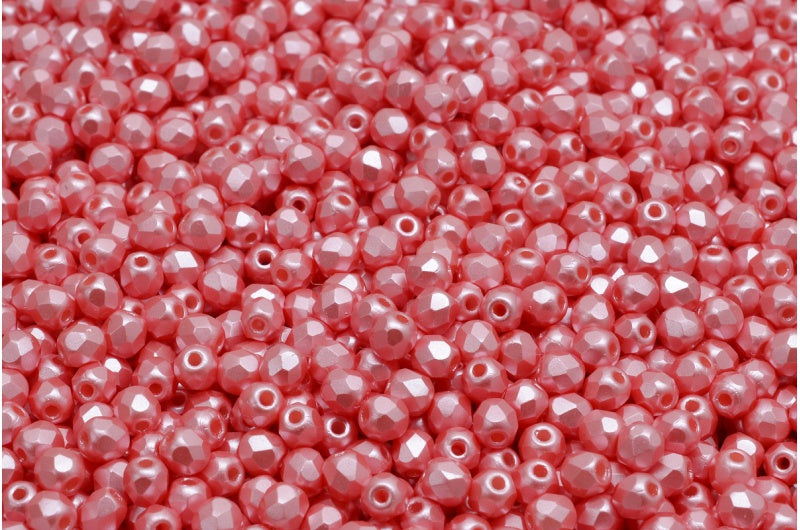 ファセット加工ビーズラウンド、ホワイトピンク(02010-25007)、ボヘミアクリスタルガラス、チェコ共和国