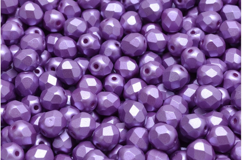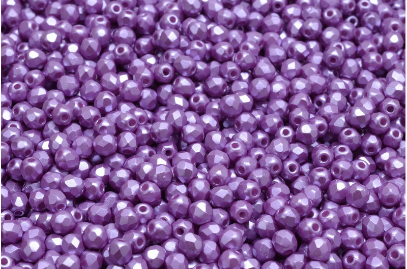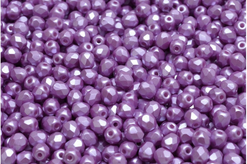ファセット加工ラウンドビーズ、ホワイトパステルパープル(02010-25012)、ボヘミアクリスタルガラス、チェコ共和国