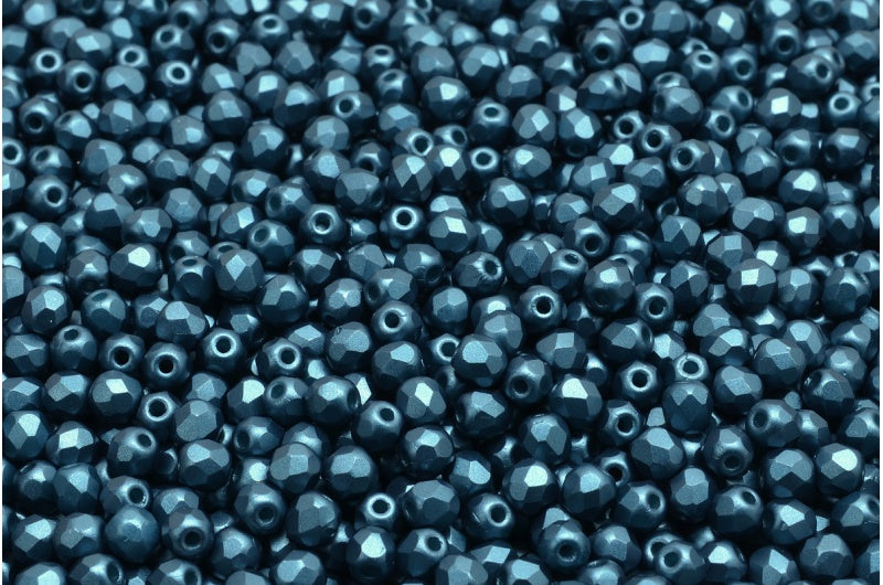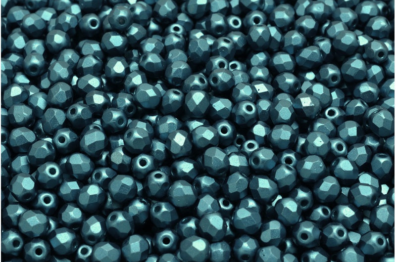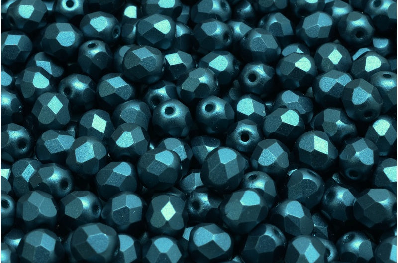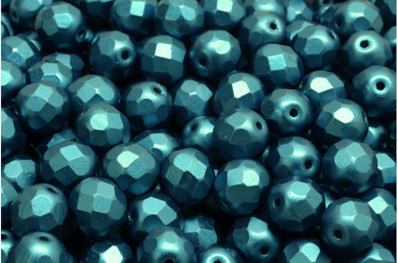 ファセット加工ラウンドビーズ、ホワイトペトロール(02010-25033)、ボヘミアクリスタルガラス、チェコ共和国