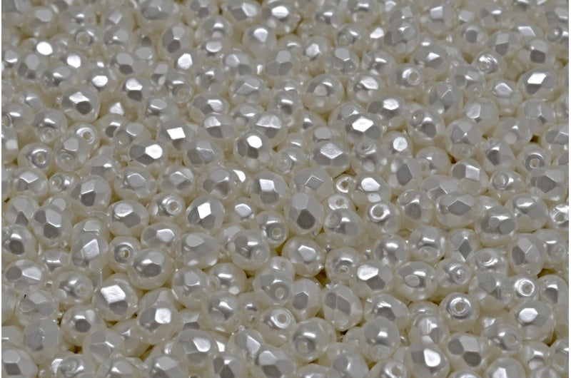 ファセット加工ラウンドビーズ、ホワイトパール(02010-70402)、ボヘミアクリスタルガラス、チェコ共和国