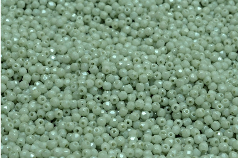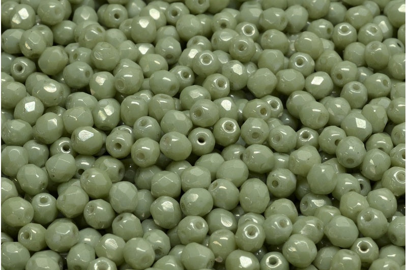 ファセットラウンドファイアポリッシュビーズ、チョークホワイトラスターグリーンフルコーティング(03000-14457)、ガラス、チェコ共和国