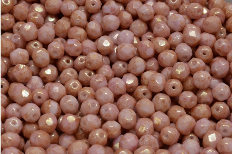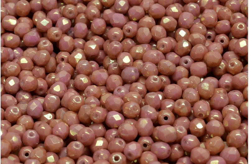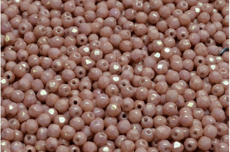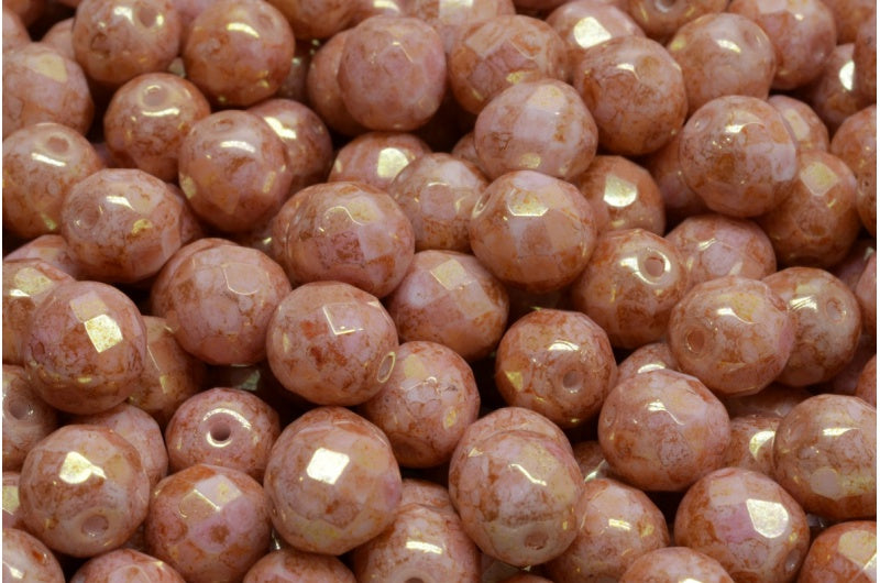ファセット加工ビーズ ラウンド、チョークホワイトラスターレッドフルコーティング(03000-14495)、ボヘミアクリスタルガラス、チェコ共和国