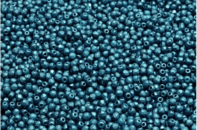 ファセット加工ラウンドビーズ、チョークホワイトペトロール(03000-25033)、ボヘミアクリスタルガラス、チェコ共和国