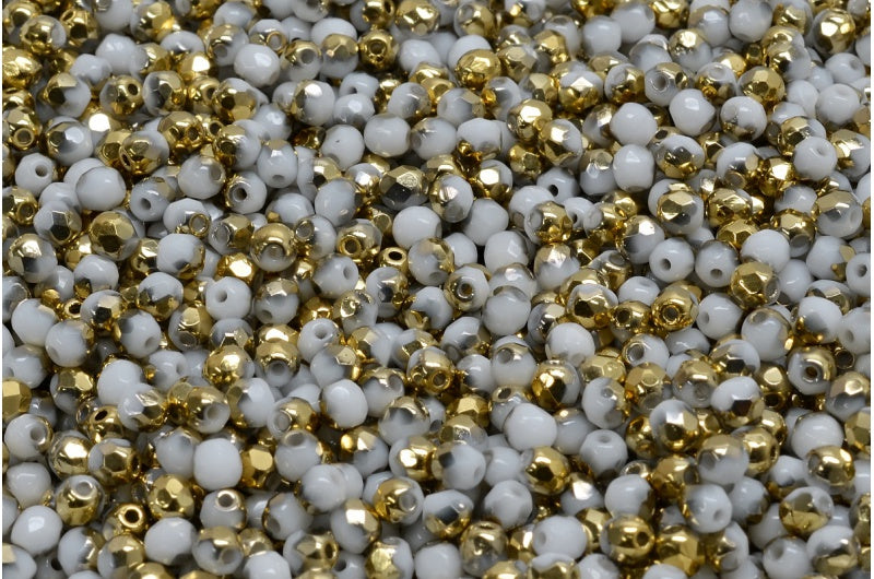 ファセット加工ラウンドビーズ、チョークホワイトゴールド(03000-26441)、ボヘミアクリスタルガラス、チェコ共和国