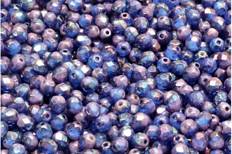 ファセット加工ラウンドビーズ、チョークホワイトコバルト星雲(03000-30050-15001)、ボヘミアクリスタルガラス、チェコ共和国