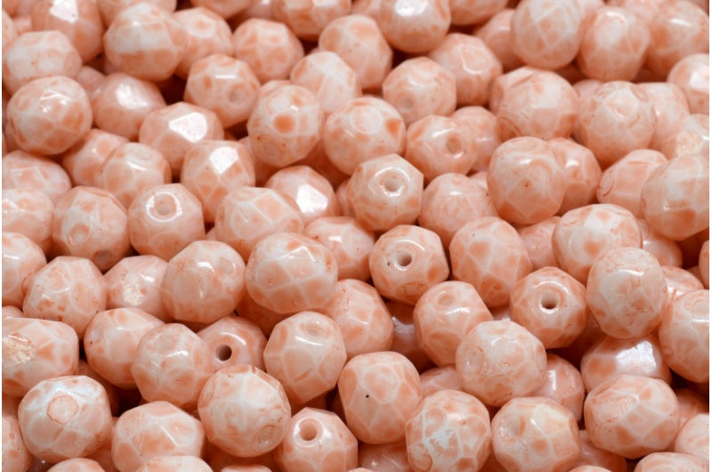 ファセットラウンドファイアポリッシュビーズ、チョークホワイトライトピンクピーチ(03000-34305)、ガラス、チェコ共和国