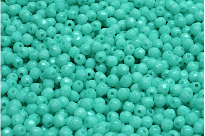 ファセット加工ラウンドファイアポリッシュビーズ、チョークホワイトライトターコイズ(03000-34309)、ガラス、チェコ共和国