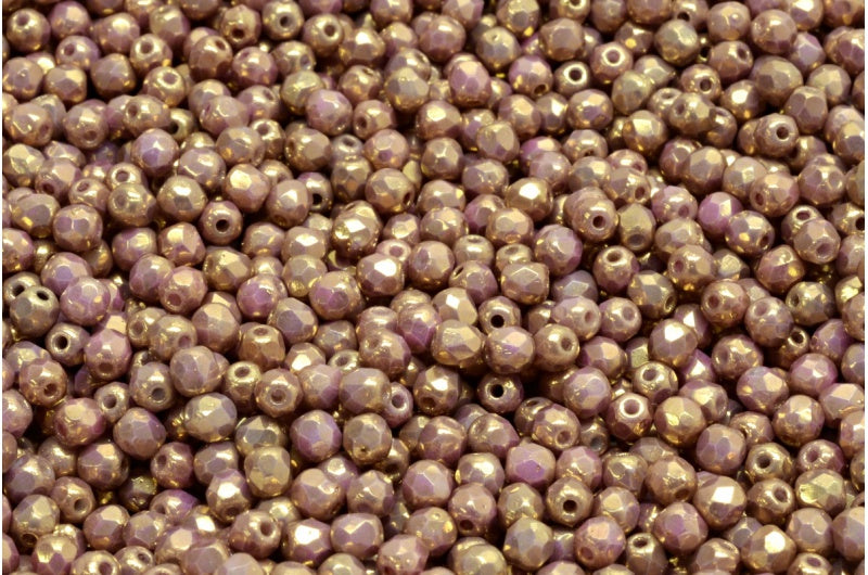 ファセット加工ラウンドビーズ、チョークホワイト真鍮(03000-90215)、ボヘミアクリスタルガラス、チェコ共和国