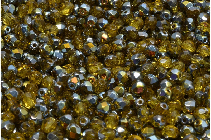 ファセット加工ビーズ ラウンド型 透明ライトトパーズイエローボルケーノ (10020-28001) ボヘミアクリスタルガラス チェコ共和国