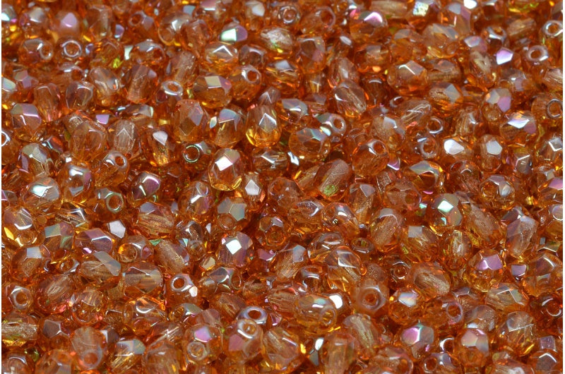 ファセット加工ビーズ ラウンド型 透明ライトトパーズイエローアプリコットコーティング (10020-29121) ボヘミアクリスタルガラス チェコ共和国