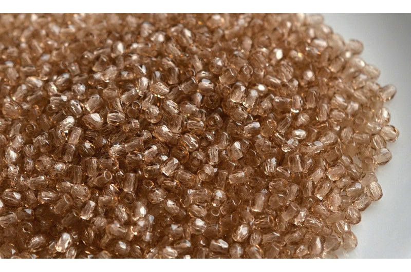 ファセット加工ビーズ ラウンド、透明ブラウン(10200)、ボヘミアクリスタルガラス、チェコ共和国