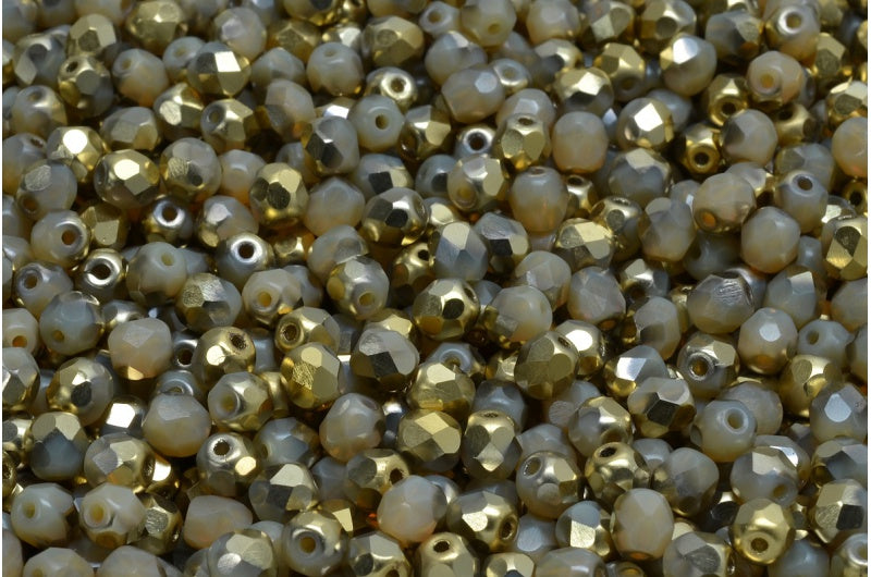 ファセット加工ラウンドビーズ、ブラウンゴールド(11010-26441)、ボヘミアクリスタルガラス、チェコ共和国