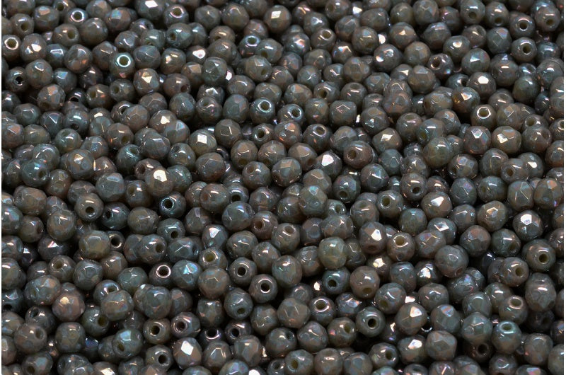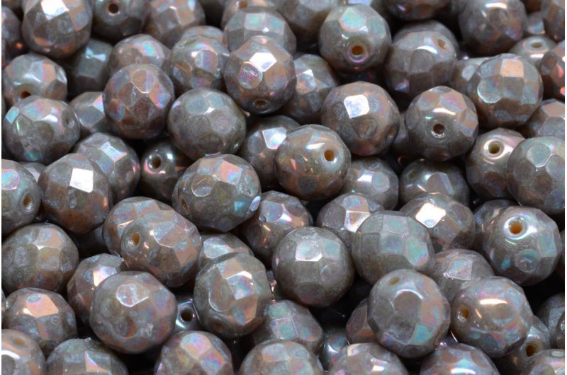 ファセット加工ビーズラウンド、不透明ベージュネビュラ(13010-15001)、ボヘミアクリスタルガラス、チェコ共和国
