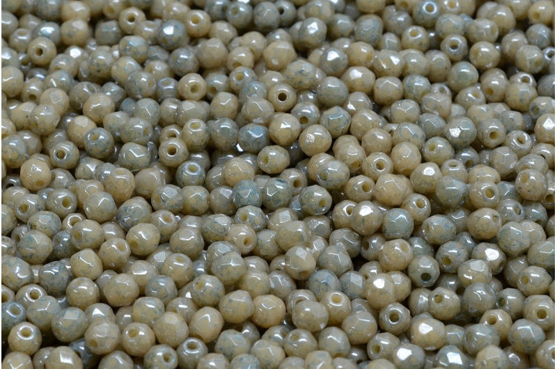 ファセット加工ビーズラウンド、不透明ベージュテラコッタブルー(13010-15464)、ボヘミアクリスタルガラス、チェコ共和国