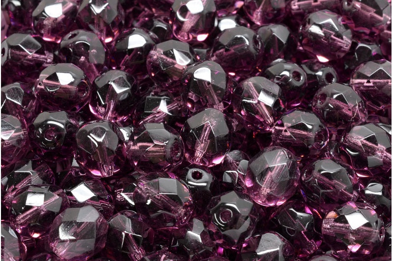 ファセット加工ビーズ ラウンド、透明ライトアメジスト(20050)、ボヘミアクリスタルガラス、チェコ共和国