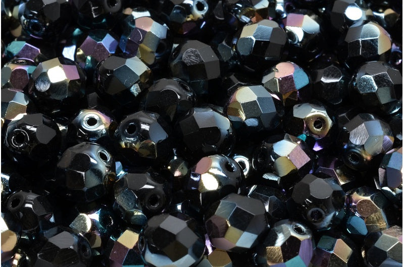 ファイアポリッシュファセットビーズラウンド、ブラック 23401 (23980-23401)、ボヘミアクリスタルガラス、チェコ共和国