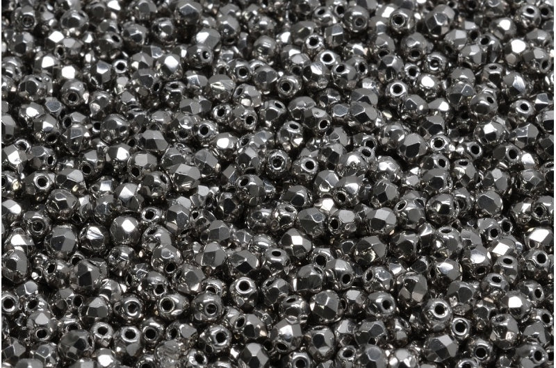 ファセット加工ビーズ ラウンド、ブラック 27500 (23980-27500)、ボヘミアクリスタルガラス、チェコ共和国